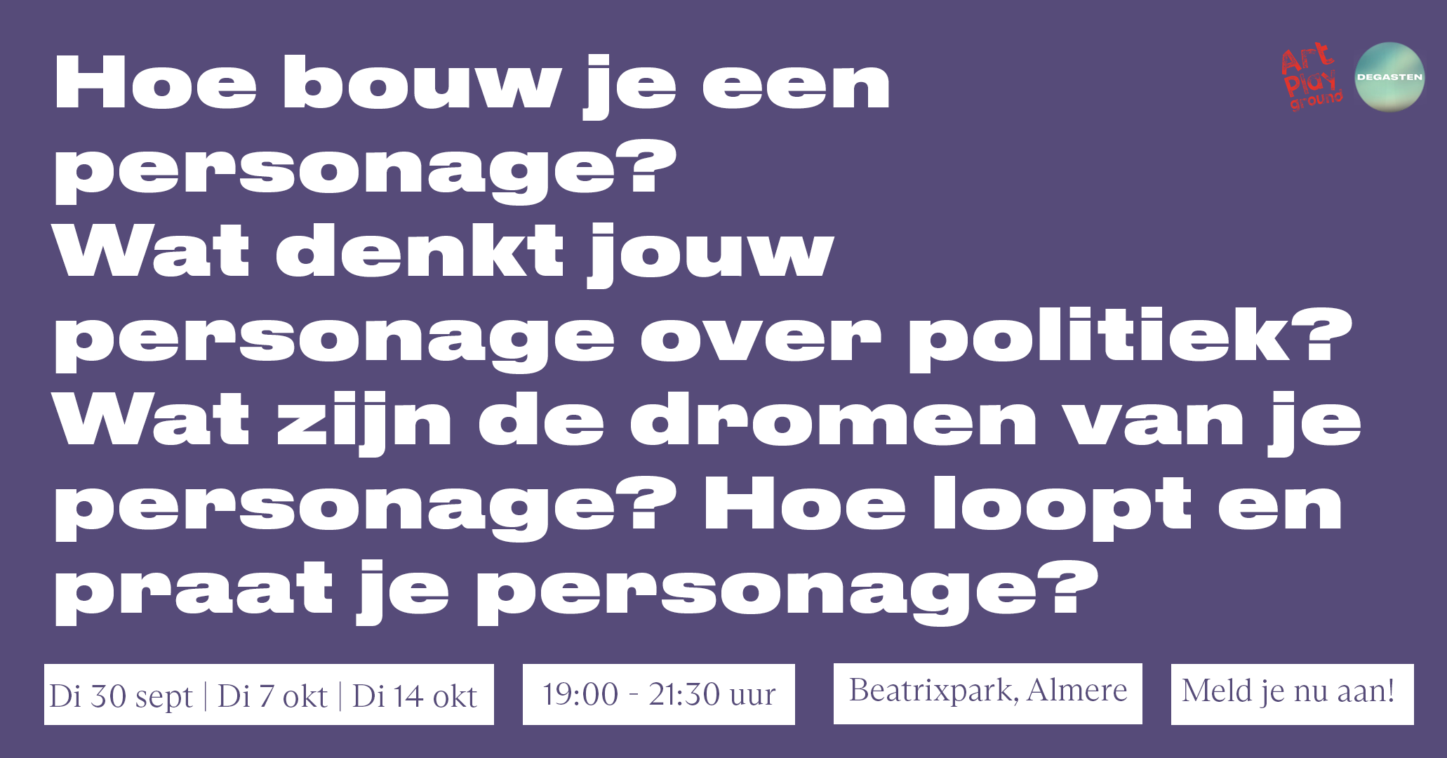 Deze OPEN STUDIO ligt de focus op maken en spelen. We gaan aan de slag met personages en van daaruit scènes maken. Hoe bouw je een personage? Wat denkt jouw personage over politiek? Wat zijn de dromen van je personage? Hoe beweegt of praat die? Vanuit je personage gaan we scènes maken, schrijven, improviseren en bewegen.